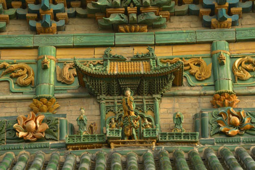 尊尊广胜佛像,件件艺术珍品。木雕释迦端坐,褒衣博带,袈裟轻盈,正在普度众生。铜塑弥陀慵靠,胸袒慈怀,蚕眉横卧,彰显大肚能容。泥塑观音飘立,左执净瓶,右擎拂尘,前来救苦救难。铁塑十八罗汉,两厢守定,神态各异,栩栩如生。迦叶严谨持重;阿难温文虔诚。形象逼真,巧夺天工。至于佛龛、饰画、斗拱、轩窗,无一刀不工,无一笔不精,无一色不准,无一件不珍。十一座大殿,座座艺术殿堂;三万件文物,件件文化瑰宝。