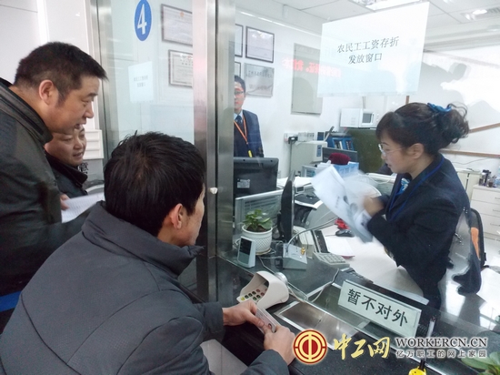 农民工在兰州银行专门窗口领取工资存折。徐宏玺 摄