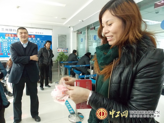 中工网讯(记者康劲 特约通讯员徐宏玺)“感谢政府,感谢劳动监察部门的同志为我们讨回了工资。”来自甘肃省甘谷县的农民工王淑芳手里拿着从兰州银行祥和支行支取的21600元工资存折和2000元现金,感动的心情溢于言表。