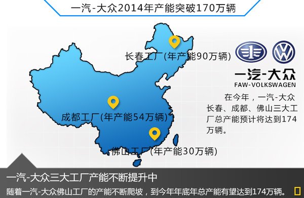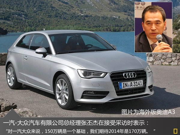 对于刚刚过去的2013年而言,一汽大众国产车型销量达到1,526,288辆,同比增长18.4%。而在今年,一汽-大众将进一步提升销量。一汽-大众总经理张丕杰表示:“我期待一汽-大众2014年能达到170万辆,2015年也可以期待190万辆,这需要我们一步一 步的去完成。”对于2014年制定的170万辆的销量目标,其相比2013年整体销量增长11.4%,这样的增长对于一汽大众又将是一个新的挑战。