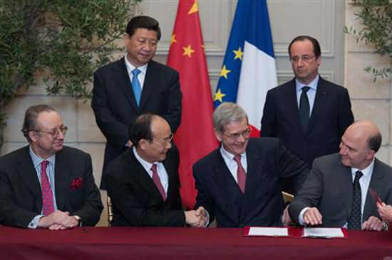 中工网讯 2014年3月26日,东风汽车集团股份有限公司、法兰西共和国政府、标致家族公司和标致雪铁龙集团,在巴黎爱丽舍宫正式签署关于2014年2 月19日对外公布的增资方案的各项协议。正在法国访问的中国国家主席习近平与法国总统弗朗索瓦·奥朗德共同出席了签字仪式。