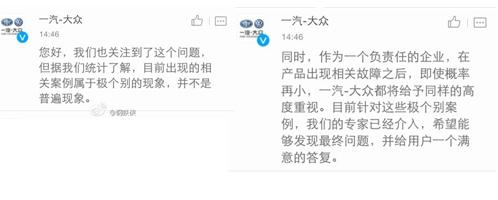 一汽大众官方微博截图(来自微博@钢铁侠)