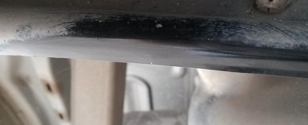党先生的速腾车副驾边的后轮纵臂下边明显有折痕