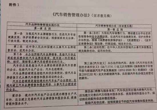 [ 搜狐汽车李欢欢]2014 年12月16日下午,《汽车品牌销售管理办法》(简称《办法》)修订座谈会在中国科技会堂召开。备受瞩目的新《办法》有更多细节流出。最新消息显示,中国汽车流通协会将于12月18日就最新版本的《办法》再次提交修改意见,《汽车销售管理办法》(征求意见稿)最终版本有望于不久后对外发布。