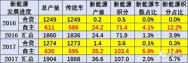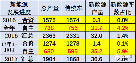 17年1-10月的新能源车销量占比2%,较16年全年的1.4%有了大幅改善提升。其中合资企业的改善较小,17年产量1.4万台,相对自主的35万台,差距不很大。
