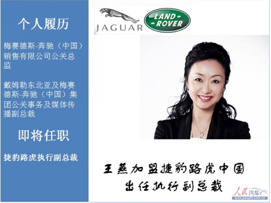 原戴姆勒东北亚副总裁、奔驰中国副总裁,现北京奔驰销售服务有限公司公关传播负责人王燕女士即将出任捷豹路虎中国执行副总裁。