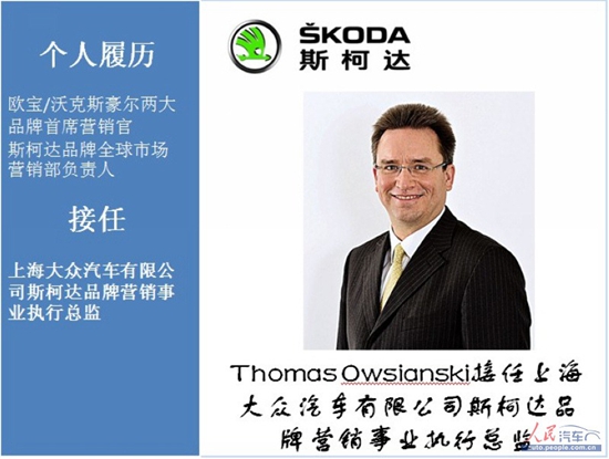 现任上海大众汽车有限公司斯柯达品牌营销事业执行总监Paul Willis 将离任,自2 月1 日起由Thomas Owsianski接任该职位。在担任此职位之前,ThomasOwsianski 曾作为斯柯达全球营销负责人,负责斯柯达品牌营销业务。