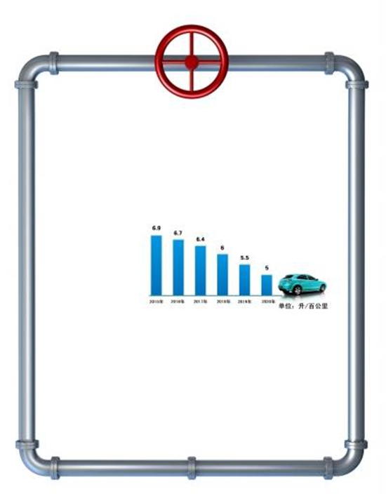 此外,在第三阶段汽、柴油车的基础上,增加对天然气、新能源(含纯电动、插电式混合动力、燃料电池)乘用车的考核。最终的目标是实现2020年国产乘用车平均油耗降至5.升/100公里的目标。