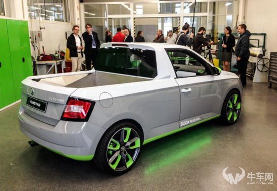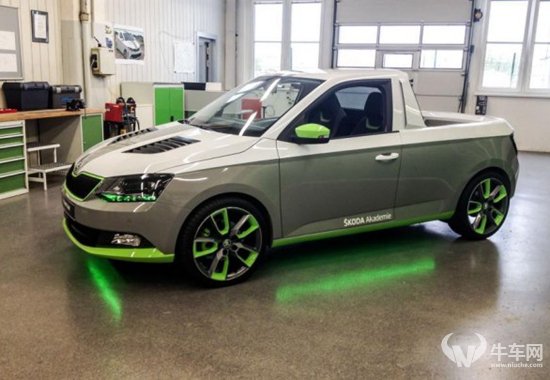 你是否已经对美式的大皮卡看腻了呢?斯柯达这次将会带来一款迷你版的皮卡车型。这款车型基于新晶锐改造而来,但新车给人的感觉却完全不同。当然了作为一辆皮卡必须要有一个车斗,所以设计师将B柱之后的车厢直接砍掉,只剩下一个小小的车斗,再外加上本就紧凑的车身让整车看起来非常呆萌。