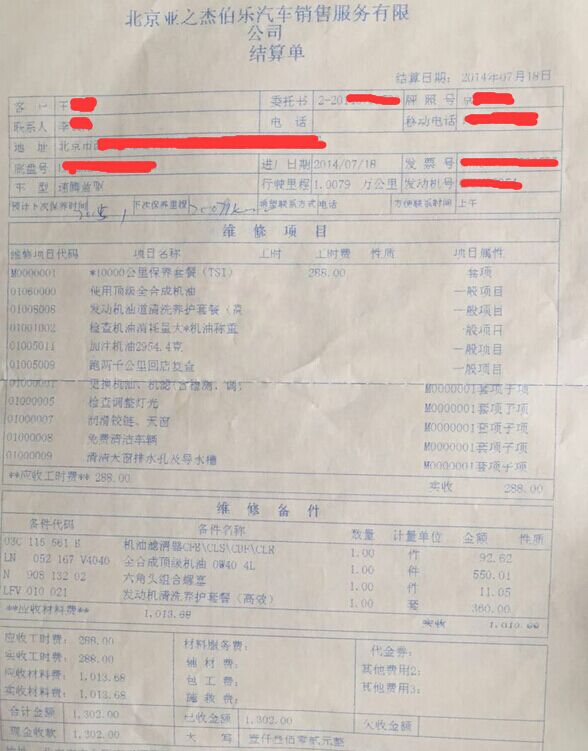 还有一位网友反应,他的2014款1.4T在二保后6000公里机油报警,经4S店检测,烧机油300多克/1000km,。“你说让我开机头大修?维权真难啊!”