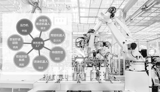 瑞士ABB七轴搬运机器人、意大利柯马焊接机器人、日本松下弧焊机器人、德国尼玛克焊钳……走进吉利宁波春晓工厂,国内自动化程度最高的冲压线、由112台机器人构成的焊接线、世界最先进的检测系统……无不让参观者啧啧称赞。然而,除了济南二机床生产的五台八连杆机械压力机、上海晓奥的工装夹具和几套国产输送设备外,春晓工厂核心装备几乎全部是国外高端品牌。