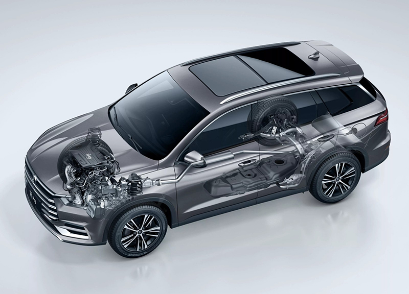 DM混动车型提供两种动力组合,其中,四驱性能版搭载1.5T直喷发动机与后桥单电机组成的插电混动系统,系统综合最大功率为323马力,峰值扭矩525牛•米,匹配6速湿式双离合变速箱。四驱高能版在此基础上增加了一台最大功率150马力的前桥电机,综合最大功率473马力,峰值扭矩775牛•米,同样匹配6速湿式双离合变速箱。