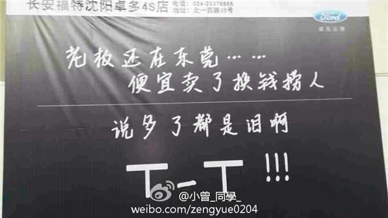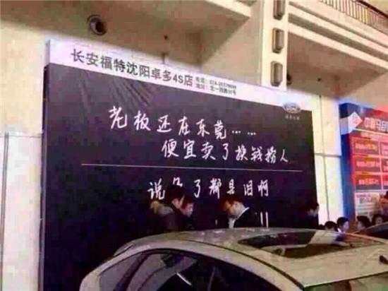 日前,长安福特某地经销商的促销活动紧跟大众潮流,也把东莞黑了一把,我只想说:福特,不带这样黑东莞的!顺便问一下,你们老板回来了吗?