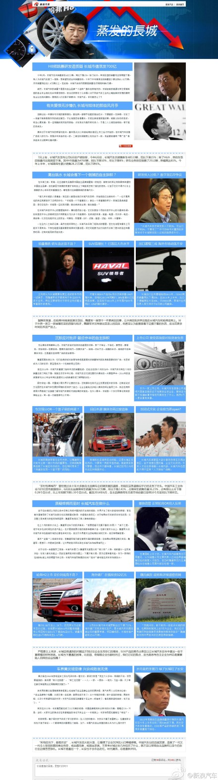 【蒸发的长城】“前几年长城的人很谦逊,现在的人都是说我们长城汽车怎样,开始把自己当做标杆。”一位不愿具名的供应商甚至作了这样的评价,“长城是一个不健康的人,做出一个很健康的样子。奇瑞总是病病歪歪,但它总在改。长城是一旦出现问题,就会病来如山倒,就会崩盘。”http://t.cn/RPwvg2G