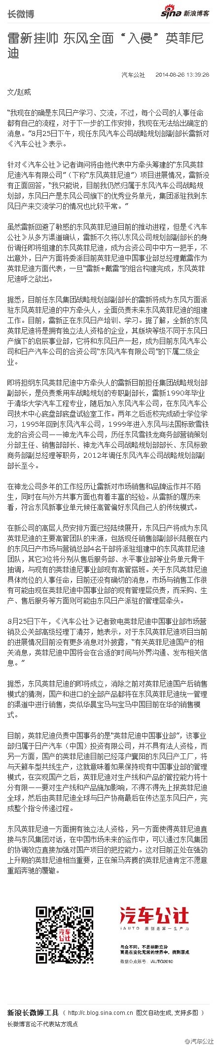 雷新挂帅 东风全面“入侵”英菲尼迪:文/赵威