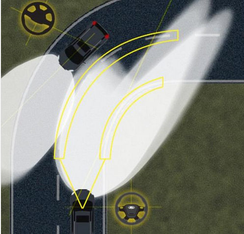 其次,该系统还与随动转向功能进行了集成。 如当车辆通过环岛时,位于后视镜上的独立相机会对路标进行读取,并引导车灯根据车辆的行驶轨迹自动调整照射角度及高度,以便驾驶员能更为清晰地看到各个出口。