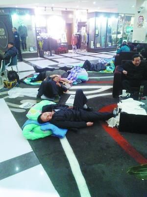 昨晚,数十位车主聚在亦庄中冀斯巴鲁大厦内。吕先生告诉记者,这里就是汽车经销商庞大汽贸集团股份有限公司的办公地。由于得不到满意答复,连日来,车主们聚在大厦内不肯离开。即便晚上,他们也都自带被褥夜宿大厦一层。或躺在褥子上闭目养神,或斜靠着大厦公用沙发聊着自己的遭遇。记者看到,车主们一个个都尽显疲态。