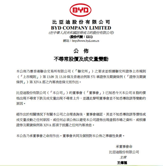 到目前为止,比亚迪方面尚不知股价暴跌的具体原因。
