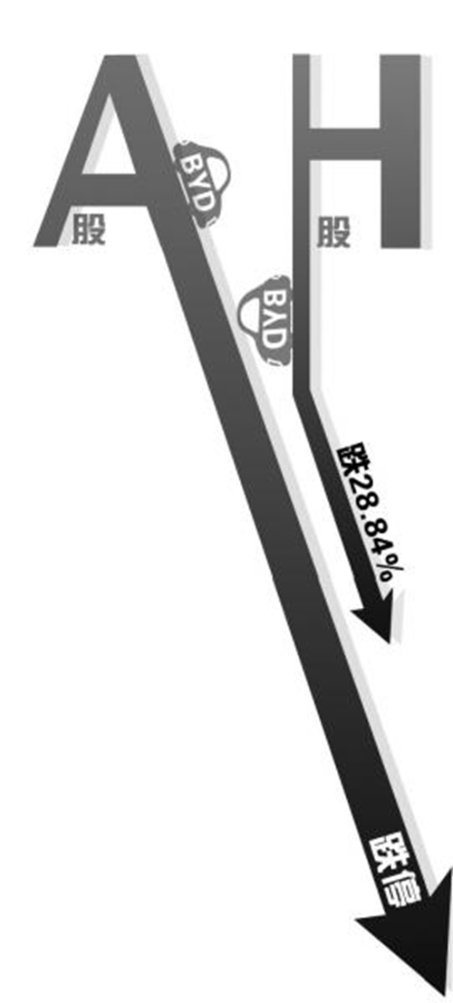 截至昨天收盘,比亚迪H 股跌28.84%,比亚迪A 股跌停。