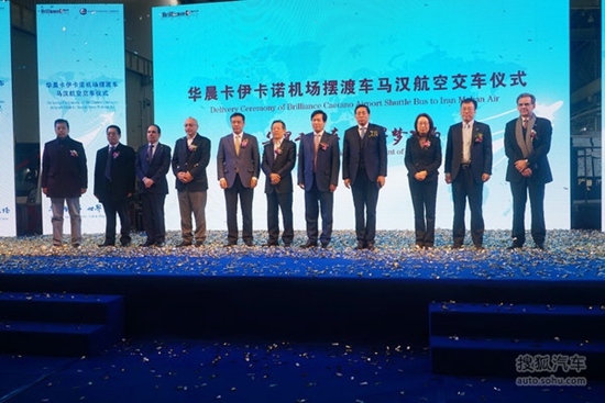 2014年12月16日上午,华晨卡伊卡诺机场摆渡车伊朗马汉航空交车仪式在大连华晨汽车产业园隆重举行,华晨集团董事长、总裁祁玉民、马汉航空董事、副总裁Malakoitipour、华晨卡伊卡诺公司总经理Mario Conde等出席了此次交车仪式。