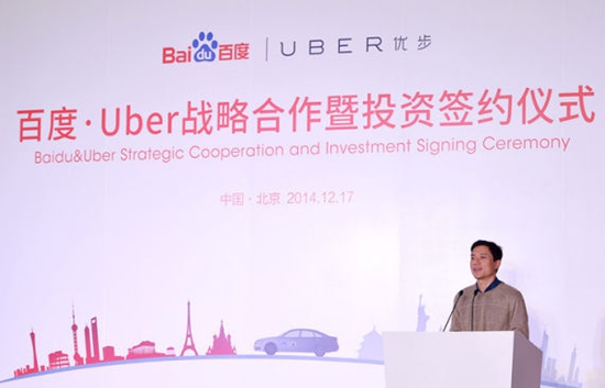 12月17日,百度与全球手机叫车应用鼻祖Uber在北京签署协议,宣布正式入资Uber,双方达成全球性的战略合作。