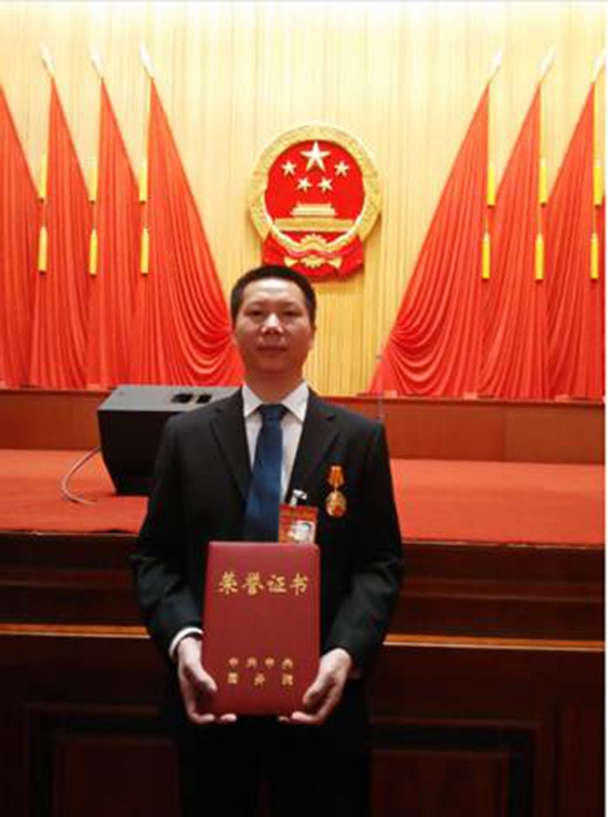 4月28日上午,中共中央、国务院在北京人民大会堂隆重庆祝“五一”国际劳动节暨表彰全国劳动模范和先进工作者大会上,神龙汽车公司一线员工杨祉刚被授予“全国劳动模范”光荣称号。