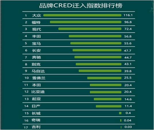 今年四月份,可瑞德购车数据发布了《二次购车品牌迁徙总报告书》。此报告数据显示,长安汽车品牌CRED忠诚指数与品牌CRED迁入指数均位列自主品牌榜首,是目前来看最能够抗击合资产品的中国品牌。而根据长安汽车置换统计调研情况来看,在置换购车的人群中,有近30%的消费者来自于合资产品。