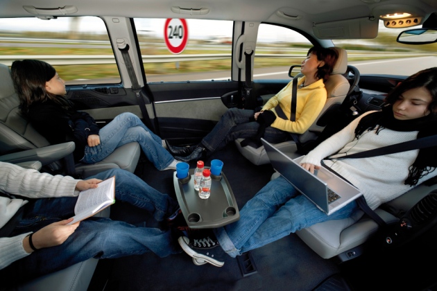 由于人类的固有弱点,比如容易疲劳,分心,或碰到紧急情况时因激动而导致应对失误,道路交通事故约有90%是由驾驶员的错误动做引起的。如果将这种控制权交给电脑,的确是很惬意的一件事儿。多少年来,不需要人掌握方向盘、或者压根就没有方向盘的无人驾驶是人们所向往的。汽车运行过程中,乘坐人可以围坐在一起,喝茶、喝酒、聊天、上网,打瞌睡也行。