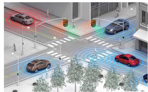 如果整个道路系统都安装了这些装置,车辆与车辆之间实现通讯交互,就为汽车行驶带来主动安全性,而且还弥补了像谷歌无人驾驶汽车这类依赖视频分析技术和地图资源的局限。这一技术概念已经在欧盟进行了实测,汽车连接成一串,就像小鸭跟踪它们的母亲一样。前面的车辆在侦测到红灯或行人时能及时通知后面的车辆降速。遇到紧急情况,由于每辆车都几乎在同一时间接受到了这个信号,并几乎在同一时间踩下刹车,就避免了导致灾难的滑行。