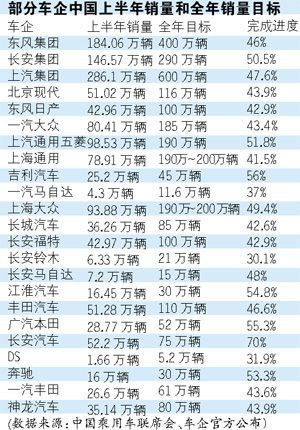 年中是一个关键时间点,时间过半,任务也要过半。与其他行业略有不同,汽车下半年销量要略多于上半年。明面上及格线仍为50%,暗 地里底线是45%。不过,今年上半年车市的低迷远超年初预估。即便底线的“45%”之于今年车企,也是难以承受之重。7月5日,中国乘用车联席会公布最新 汽车产销数据,上半年,中国共销售广义乘用车988.8万辆,同比增长8.4%,增幅低于去年。记者统计,超过六成车企未能达到50%及格线,超过三成低 于45%,有小部分车企甚至低于40%。下半年为冲击年度销量目标,车企卖车会“不择手段”。在上半年“官降”基础上再降价,会是大概率事件。