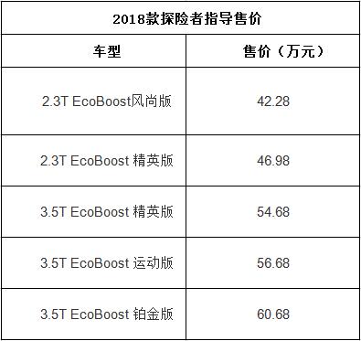 中工网讯 近日,福特官方宣布2018款福特探险者正式上市,搭载2.3T和3.5T V6两种发动机,其售价区间为42.28-60.68万元。