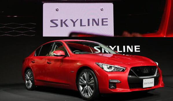 新款SKYLINE与2014年上市的目前车型采用相同底盘,但设计明显改变。车标也从“英菲尼迪”改为“日产(NISSAN)”。