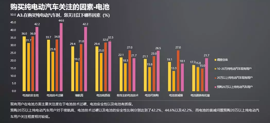 与传统燃油车不同的是,新能源汽车消费者对于售后体验以及充电体验的关注非常高,达到了24.5%以及11.2%。新能源汽车用户跟过去的传统燃油车的用户已经发生了根本的改变。