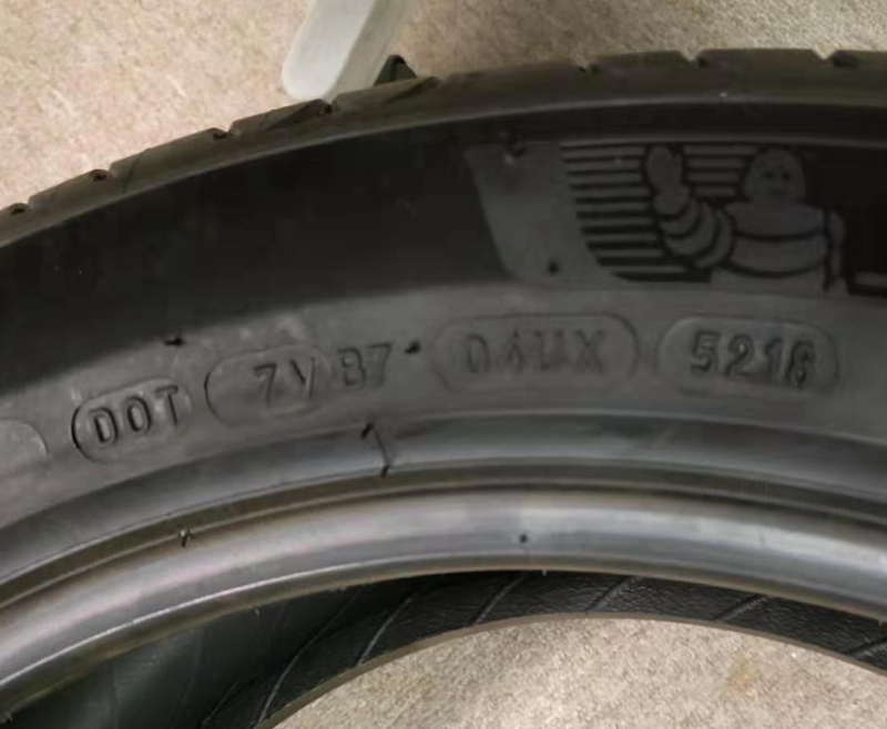 与此同时,记者发现上述消费者所购买的“二维码被损毁”的米其林轮胎,同样都有不易脱落的条形码和DOT信息,只是条形码和二维码一样也遭遇了人为损毁。