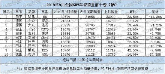 9月,自主、德系、日系依然保持着“433”格局,共有4款自主车型、3款日系车型和3款德系车型入选“9月国内SUV销量前十榜单”,自主的“团队”出击、德系的大幅突进与日系的冲高回落成为焦点。
