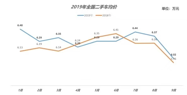 2019年9月,全国二手车平均价格为6.02万元,相比8月份平均价格下降了0.35万元,乘用车除SUV车型均价增长以外,其他车型均价均有所下降,其中基本型乘用车均价下降8.68%,MPV车型下降6.27%,交叉型下降9.12%。与去年同期相比,2019年9月份全国二手车平均价格增长了0.06万元,价格趋势与去年同期基本相同。