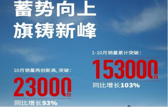 今年,在市场持续低迷的大环境下,红旗品牌却驶上了“快车道”。统计数据显示,10月,红旗汽车销量为23000辆,同比增长了93%,1-9月红旗汽车的销量为13万辆,同比增长了104%,1-10月红旗销量达153000辆,同比增长103%。