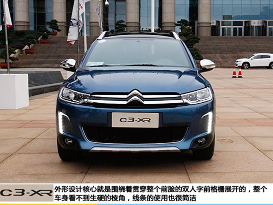 对于C3-XR 来说外形设计核心就是围绕着贯穿整个前脸的双人字前格栅展开的,整个车身看不到生硬的棱角,条的使用也很简洁,但是整车视觉效果并不平淡,依然充满动感。这背后的原因就是外形行李架、轮毂以及尾灯等设计非常出彩。而简洁的车身线条就好像一个干净的背景,将出彩的设计在视觉效果上展示的更突出、充分。再加上恰到好处的前后悬比例,让C3-XR 绝对可以称得上是近期SUV 市场中外形设计的精品。