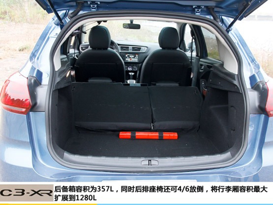 除了一些新奇的设计之外,我喜欢法系车内部最大的原因就是敞亮。虽然作为欧洲厂商,在设计车时不会像美系在尺寸上那么大手大脚,但是很善于在有限的车型尺寸下,更大拓展车内空间。对于C3-XR 来说虽然车身外形尺寸长宽高,相比同级车来说并不显优势,特别是车身高度,还明显低于同级车。但是2655mm的轴距在同级车中没有对手,这已经是紧凑级SUV 的数据。坐在车内后排腿部空间非常宽敞。而车身高度也并没有给前后排乘坐者的带来压抑的感受。C3-XR 后备箱容积为357L,同时后排座椅还可4/6 放倒,将行李厢容积最大扩展到1280L.配置亮点与实用性并重标配给力