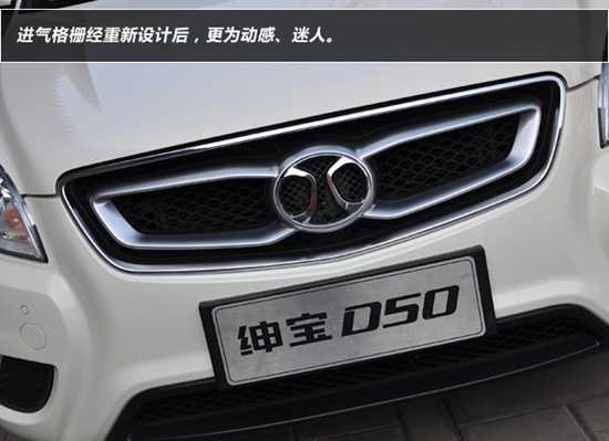 在外观方面,北汽绅宝D50 延续了其一直以来的运动风格,整体外观年轻化,造型时尚、动感。前脸的造型可以算是采用了家族式的设计,而“H ”型的设计又算是一个小小的创新,进气格栅经重新设计后,更为动感、迷人。