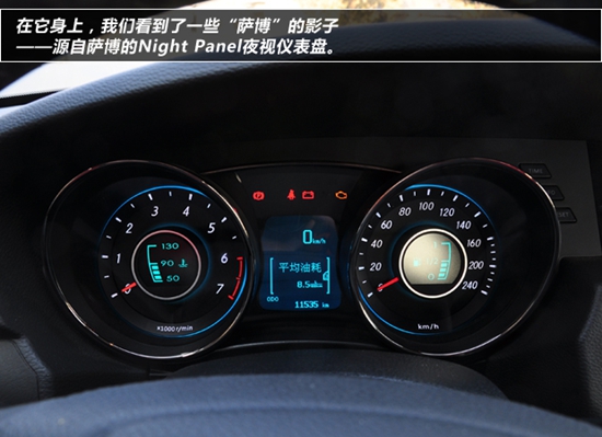 在它身上,我们看到了一些“萨博”的影子——源自萨博的Night Panel 夜视仪表盘。带有蓝色光芒的仪表盘充满了十足的科技感,并且拥有十级亮度调节功能。中控台上方的显示屏为单色设计,仅仅显示多媒体信息,略微有一些“奢侈”。但在厂家提供的选装包中颗升级为DVD 、GPS 导航等配置。