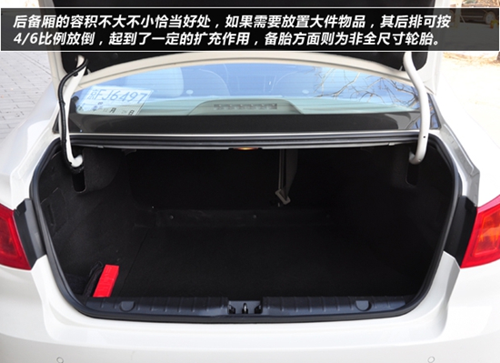 天窗虽然面积不大,但在某些特定的时刻会起到至关重要的作用。后备厢的容积不大不小恰当好处,如果需要放置大件物品,其后排可按4/6 比例放倒,起到了一定的扩充作用,备胎方面则为非全尺寸轮胎。动力方面,绅宝D50 采用了三菱4A91 1.5L 发动机,其可提供113 马力的最大功率以及147 牛?米的最大扭矩。与之匹配的则是一款5 速手动变速箱,另外还有一款CVT 变速箱可供选择。