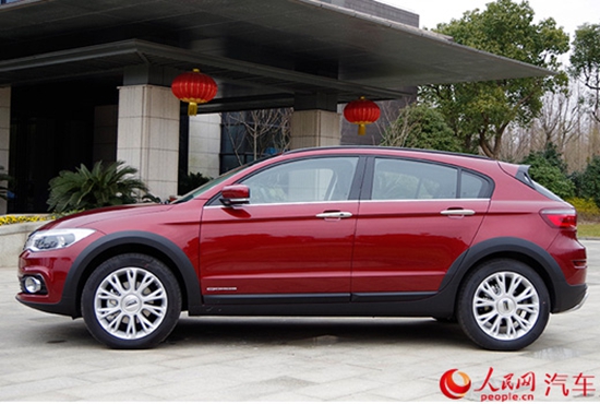 观致3都市SUV的车身侧面明显比五门版更高一点,170mm的离地间隙在同类产品中比较突出。微微隆起的引擎盖、圆滑的车窗弧线让它看起来挺有眼缘。四周的黑色防擦板起到了不错的装饰作用,当然也不能忽视它在刮蹭时可以更好地保护车身。