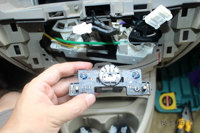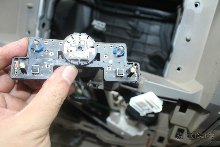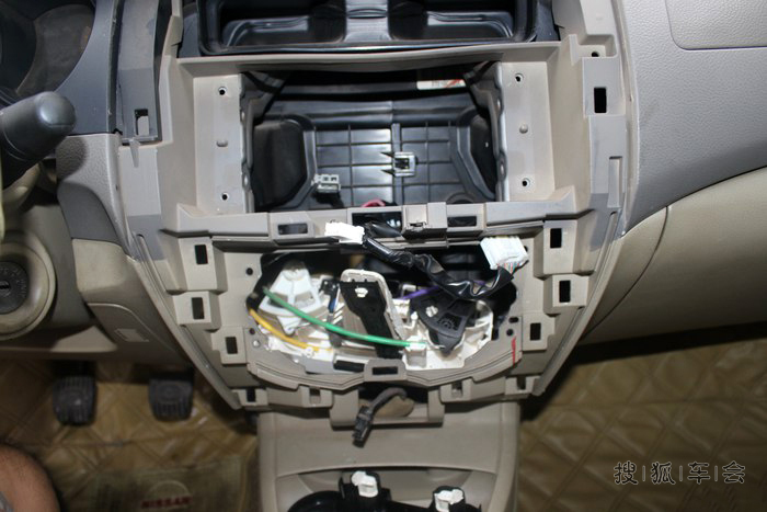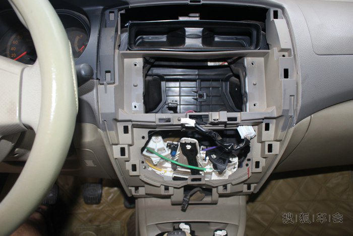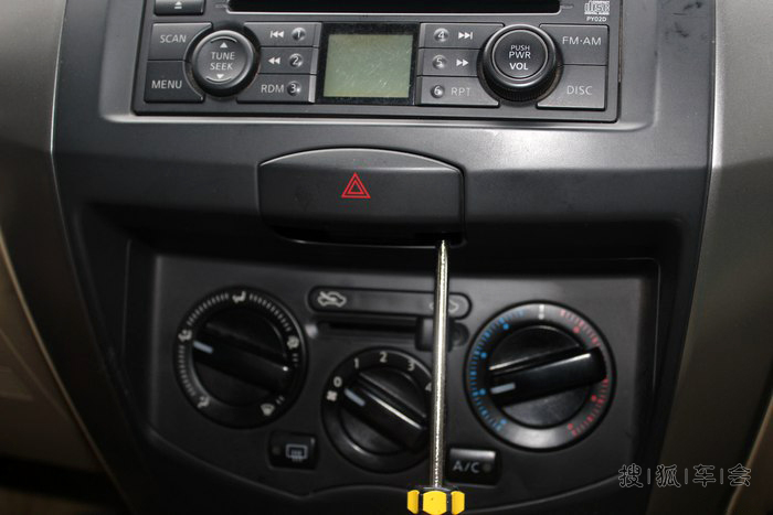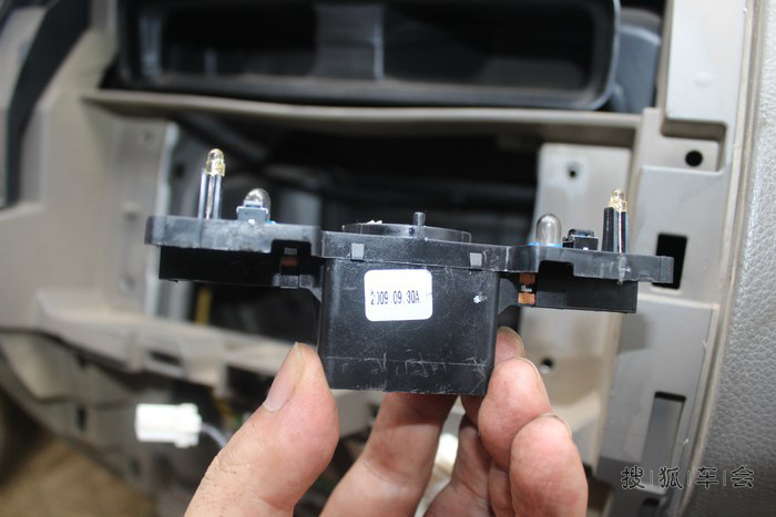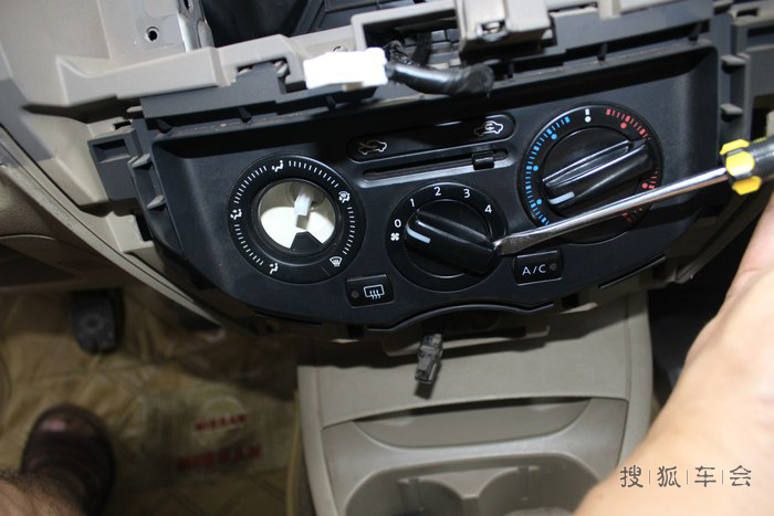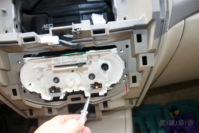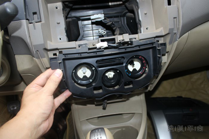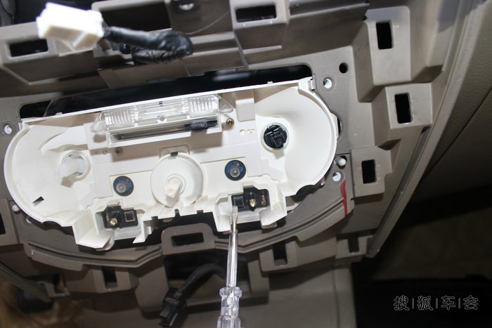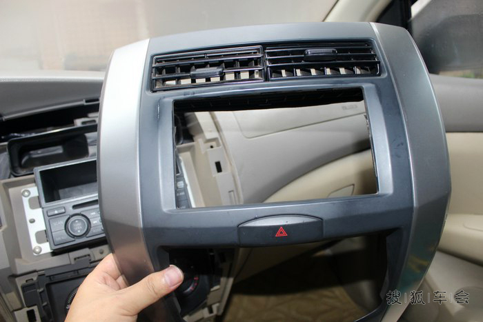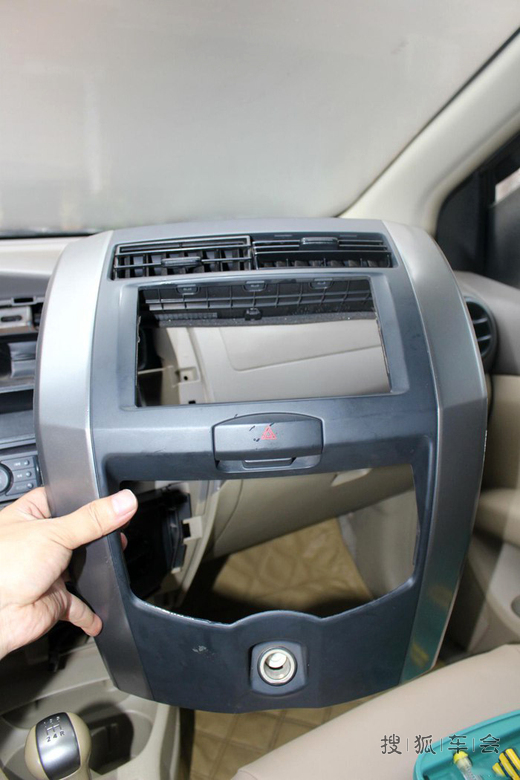 卸这个面板时不能太用蛮力,从点烟器下部两边开始用力。还要注意,面板后有点烟器、双闪的电源线,不要扯断。