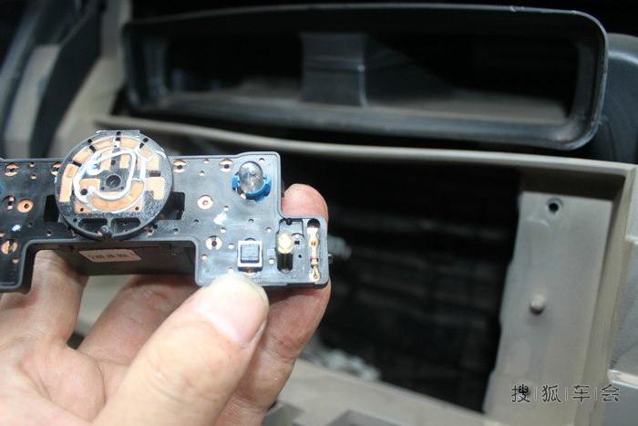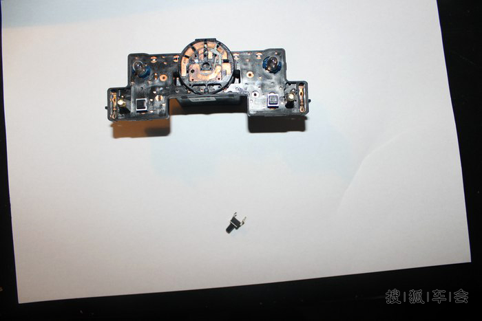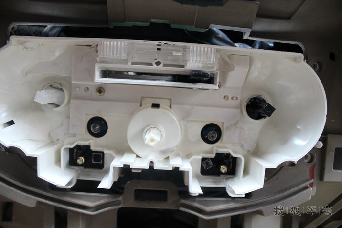 里面是开关总成白色塑料壳体,中间那个金属片是风力档旋钮,不要去动,那个部件有几个弹簧和弹珠,掉出来麻烦,切勿试图去拆。