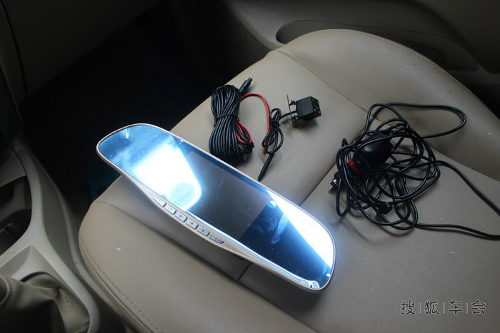主机、视频线、后摄像头、5V电源。主机安装在车顶后视镜上,电源线和视频线一并走出,从顶篷上过。