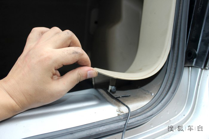骊威身上所有的塑料件都是可以拆的,图示的塑料卡扣拆除后,视频线过尾门。