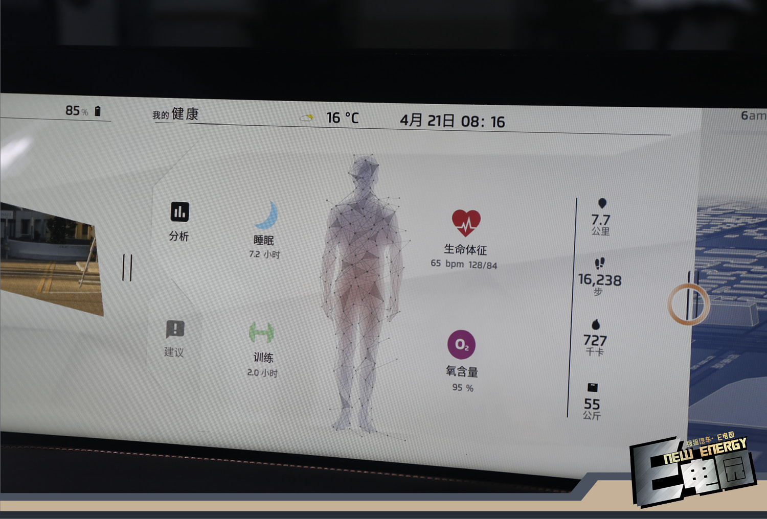 另外还有一点体现智能化的就是未来还可以将车辆与智能手环相关联,车上就可以显示一些健康以及运动相关信息,甚至座椅还可以当做一个体重秤,估计很多姑娘可能不会特别喜欢这个功能吧。但像我这样的胖子,车上显示这些信息也许可以更好的督促我去减肥吧。