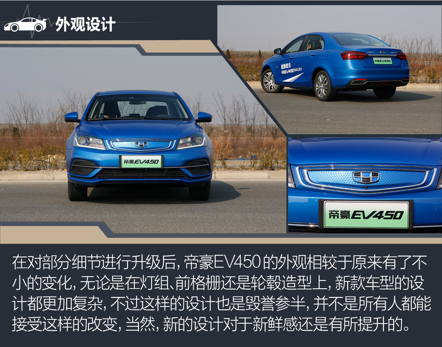 可以说,在外观内饰的设计上,升级过后的帝豪EV450相较于e5 450还是有着一定的优势,不过评判一辆车的时候,我们也不能只看表面,尤其是对于纯电动汽车来讲,续航、性能方面的表现才是消费者更加关注的。