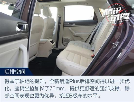 全系标配后排出风口,对于家用紧凑型轿车来说,后排出风口是非常实用而讨巧的配置。出风口下方还有两个USB插口,非常方便后排乘客的使用。全新朗逸Plus虽然没有采用全景天窗,但相比现款车型其尺寸做了进一步升级。座椅的包裹性和舒适性都不错,软硬也适中。主驾为电动调节并配有前排座椅加热功能。得益于轴距的提升,全新朗逸Plus后排的空间得以进一步优化,座椅坐垫加长了 75mm,提供更舒适的腿部支撑,膝部空间表现也更为优异,接近B级车的水平。后备箱比较规整,加上后排座椅可以4/6分放到,空间拓展上比较容易,利用率也比较高,能够从容的应对家庭出游行李所需空间。
